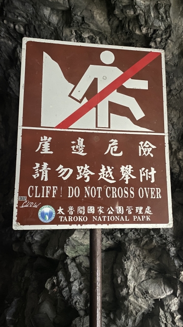 崖邊危險 請勿跨越攀附(ㄧㄚˊ ㄅㄧㄢ ㄨㄟ ㄒㄧㄢˇ ㄑㄧㄥˇ ㄨˋ ㄎㄨㄚˋ ㄩㄝˋ ㄆㄢ ㄈㄨˋ)