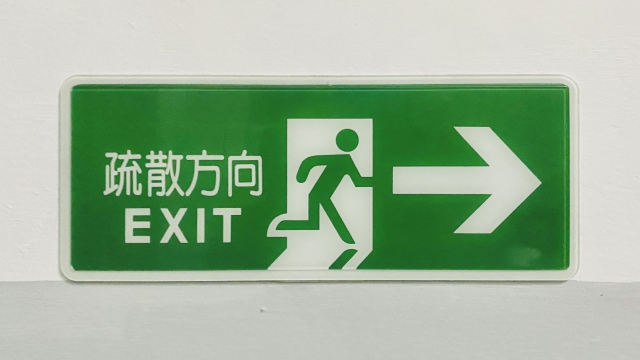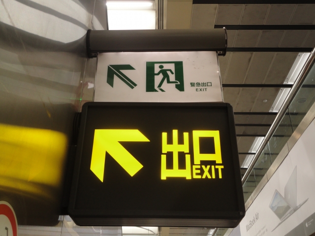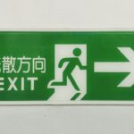 通常利用する出口でもあり、緊急出口にもなっていますね。緊急出口は非常口のことを指します。日本語と標示の仕方が似ているので、これは分かりやすいかなと思います。日頃から出口はどこかということを気にして確認しておくといざという時のために安心です。