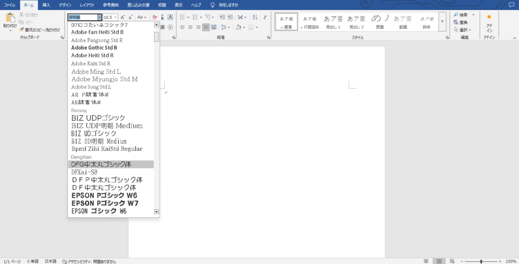 実際にフォントを使用する時には、例えばお使いのソフト(WordやPowerpointなど)でフォントのタブから、使いたいフォントの名前をクリックして使用します。