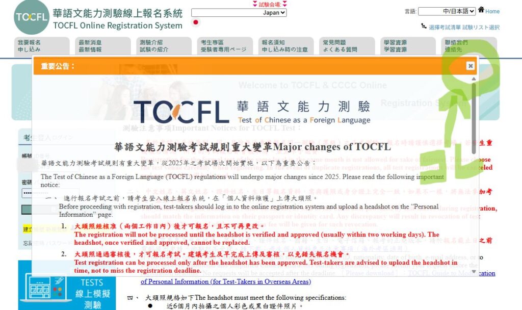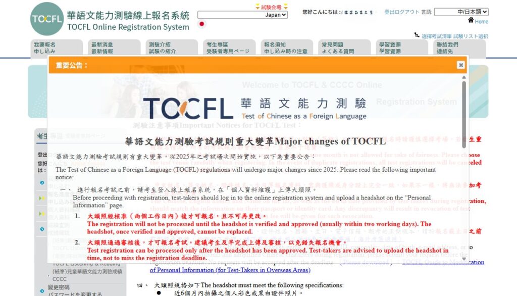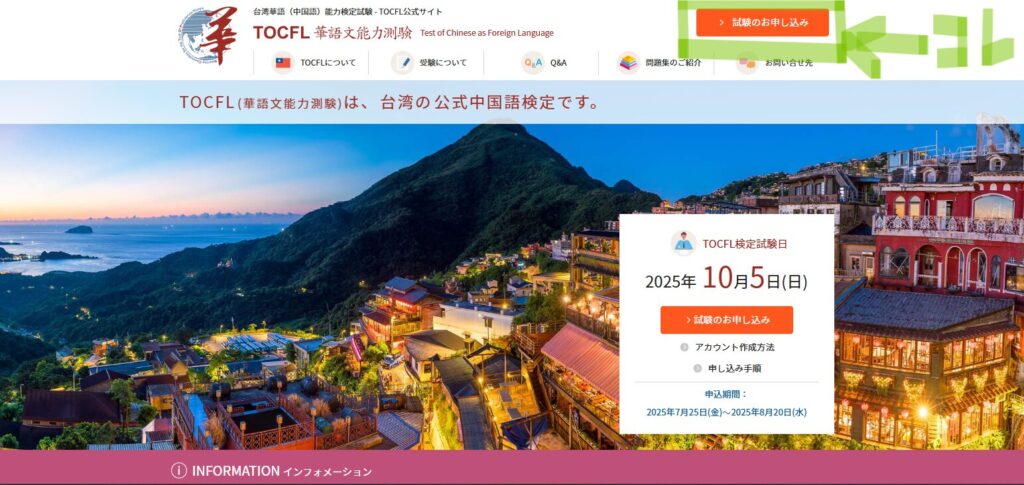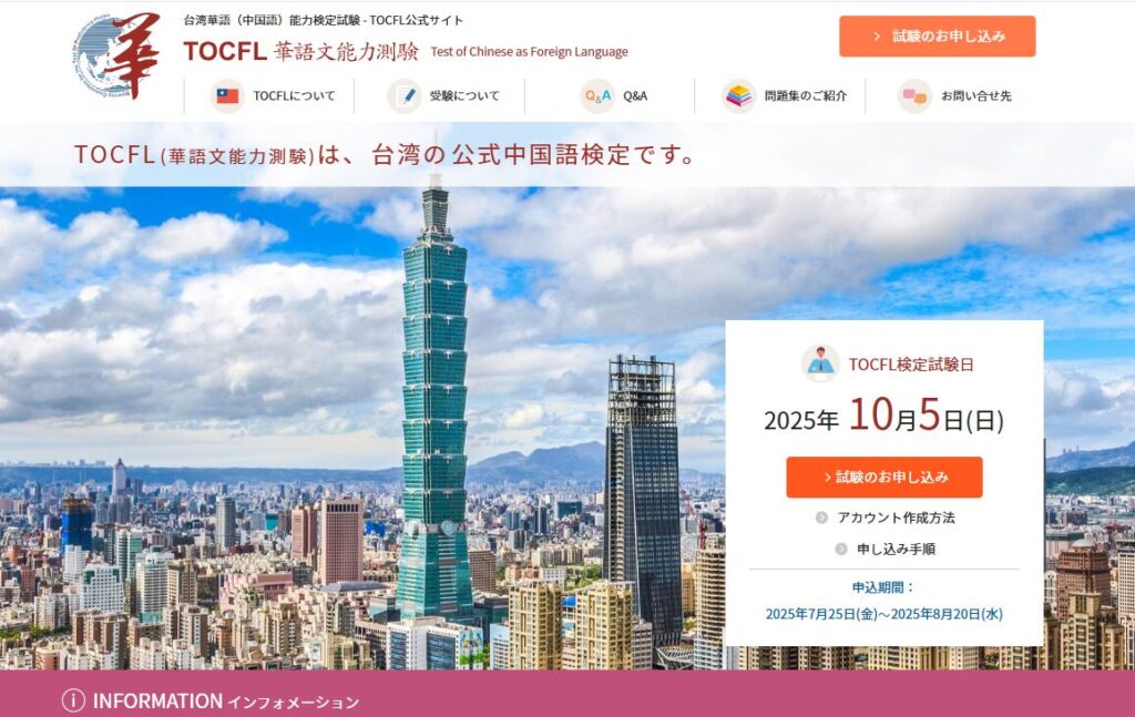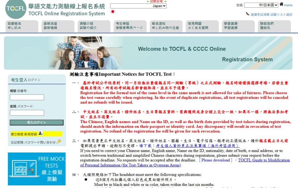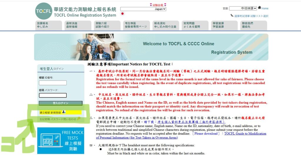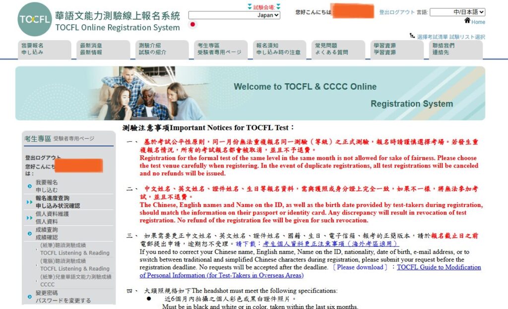 TOCFLをまだ受けたことがなかったので、実際に受けてみようと思い、受験申し込みをしてみました。