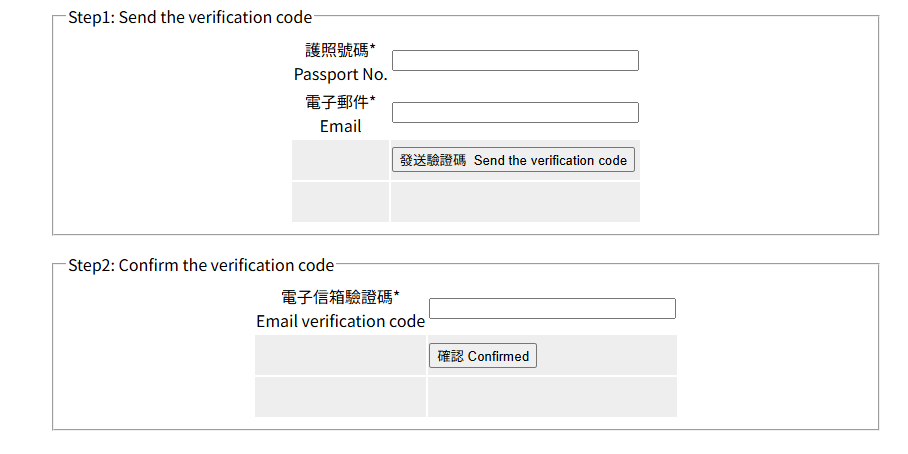 Step1の護照號碼のところにパスポート番号を入力、電子郵件のところにメールアドレスを入力してください。