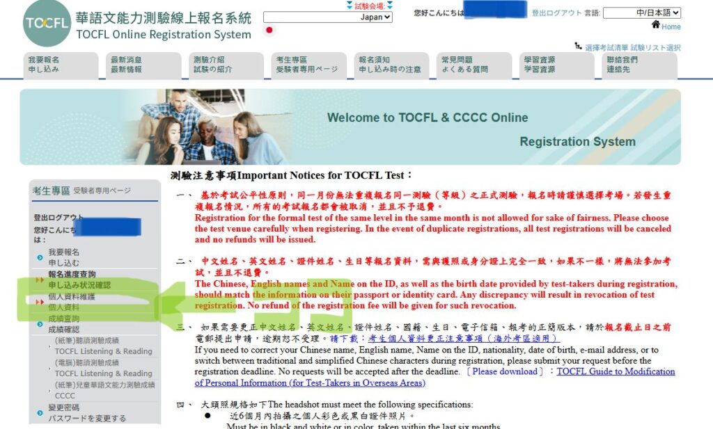 登録を行う前に、受験者はオンライン登録システムにログインし、「個人資料維護(個人情報管理)」ページで顔写真をアップロードする必要があります。