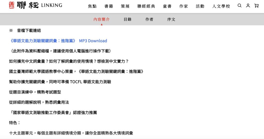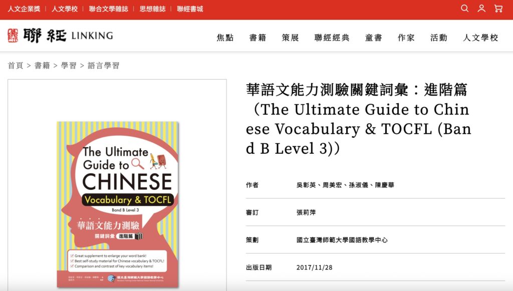 華語文能力測驗關鍵詞彙:進階篇(The Ultimate Guide to Chinese Vocabulary & TOCFL (Band B Level 3))のページが開きました。