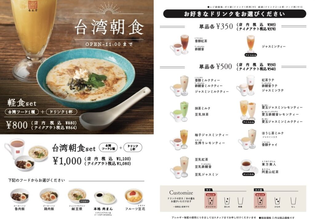 一部店舗・朝の時間帯限定で、台湾をイメージしたモーニングメニューが提供されています。
